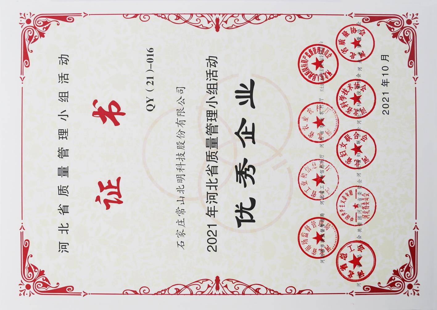 • 2021年河北省质量管理小组运动优异企业