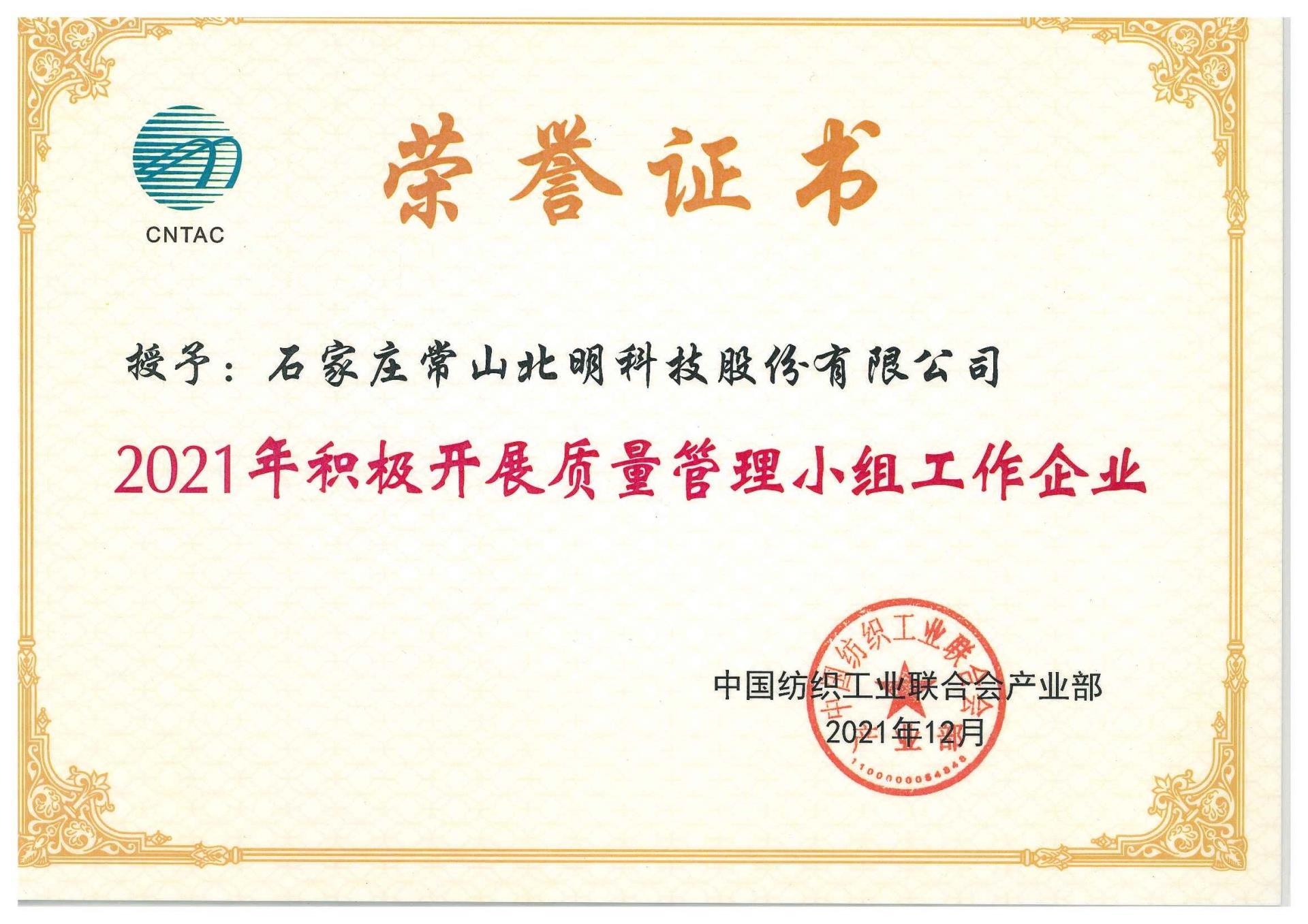 • 2021年起劲开展质量管理小组事情企业
