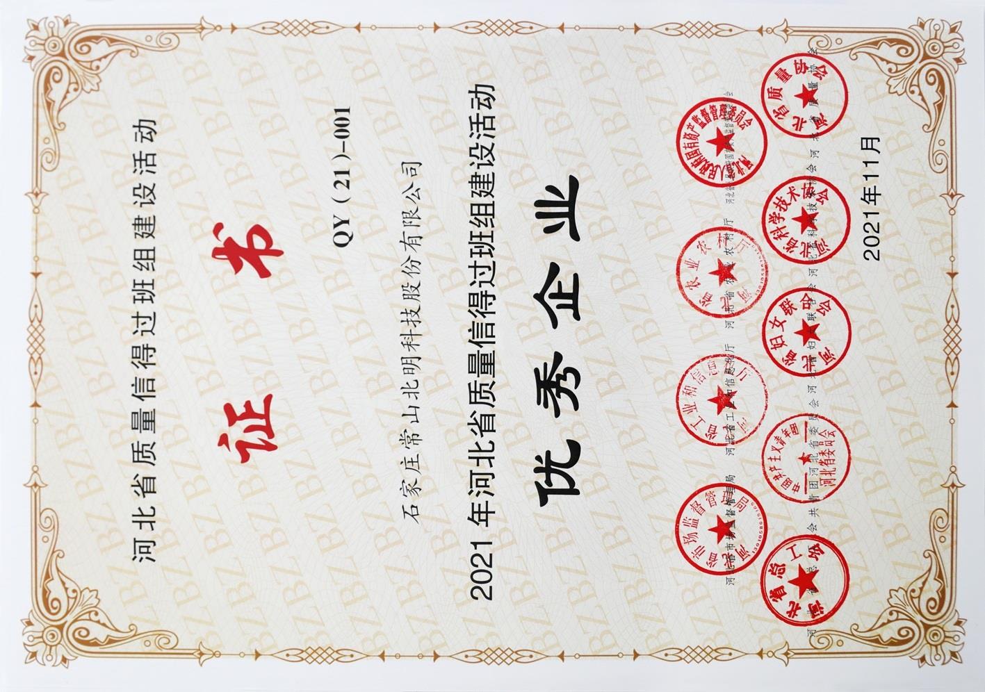 • 2021年河北省质量信得过班组建设运动优异企业